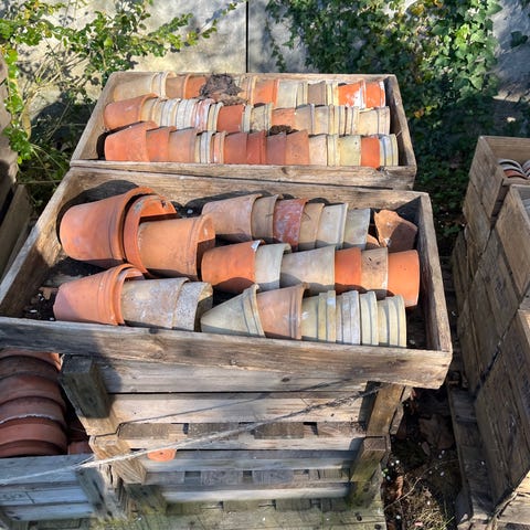 Tødlers urtepotter og andre urtepotter og underskolen.
