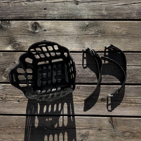 GreenGuard mundkurv i sort, str. full og med tilhørende grime.