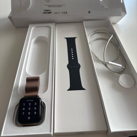 Apple Watch SE 2022 smartwatch med 40 mm urkasse i aluminium og sandfarvet/starlight sportsrem. Uret leveres med original emballage og magnetisk opladerkabel med USB‑C stik. Skærmen er rektangulær med touchbetjening. Velegnet til hverdagsbrug, aktivitetssporing og notifikationer fra iPhone. Skærmen har haft beskyttelsesglas på, så fremstår fin og velholdt uden ridser. Batterikapacitet 91%. Købt april 2023, kvittering haves. Kan mødes i 2450 Kbh efter aftale hver 14. dag i dagtimerne for afhentning, ellers sender jeg også gerne.