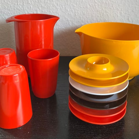 Orange skål: mål: h. 6,5 cm, d. 12 cm.