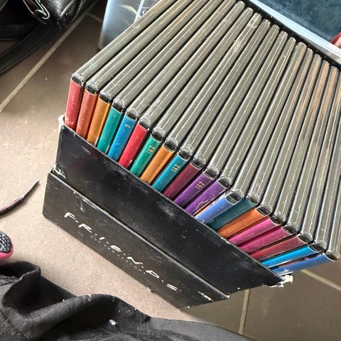 Den komplette samling af den Emmy-vindende TV-serie "Friends" med Matthew Perry (Chandler), Matt LeBlanc (Joey), Courtney Cox-Arquette (Monica), Lisa Kudrow (Phoebe), Jennifer Aniston (Rachel), og David Schwimmer (Ross). Serien blev vist første gang i 1994 og sluttede i 2004.