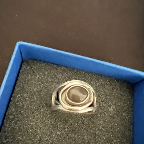 Smuk ring i sølv 925. Ø 17,3 mm. Lang 1,8 cm. Med fin detaljer er sort Sten.