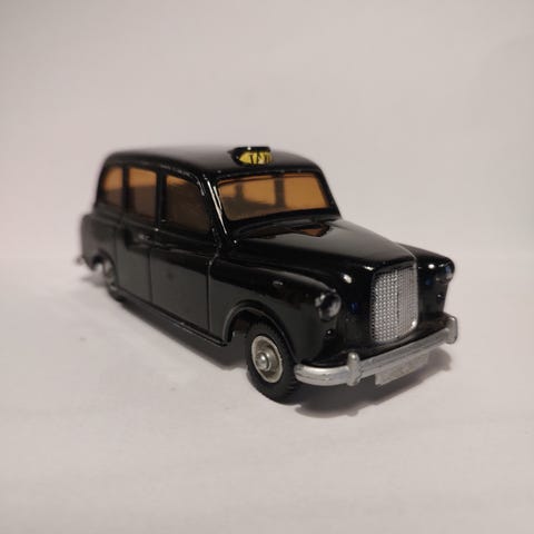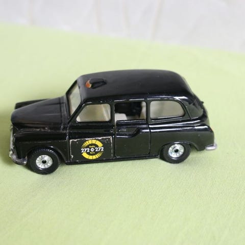 London Taxi modelbil i sort. Modellen forestiller en klassisk London taxa med detaljer som døre, vinduer og hjul samt grønne London Taxi-mærkater på siderne. Egnet som samlerobjekt eller legetøj til børn, afhængigt af størrelse og materiale. Velegnet til udstilling på hylde eller skrivebord.