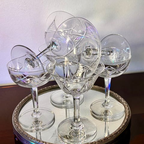 Glas, Fransk, 5 stk. champagne glas små, gammel, jeg sender gerne med DAO eller GLS.