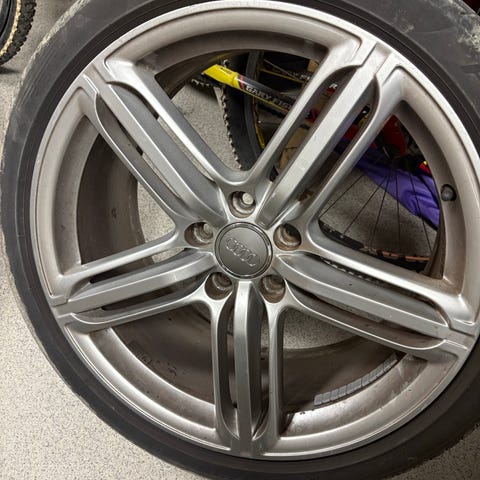 Flotte Audi-fælge med originale sommerdæk. Kun kørt 1 sommer