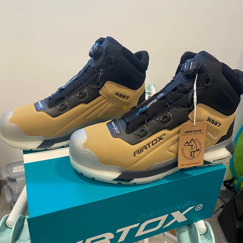 Sælger disse Airtox sikkerhedssko da de ikke skulle bruges alligevel, og kunne ikke tages retur. Str 41 der har aldrig været en fod i dem. Det er en vanvittig god støvle, har selv flere par af den model. Har prøvet de andre modeller, men de er elendige i forhold til denne her.
