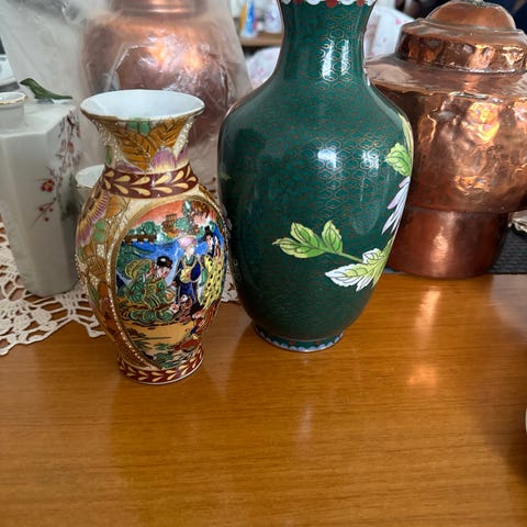 Smukke ældre vaser af onyks og porcelæn. Læs beskrivelsen