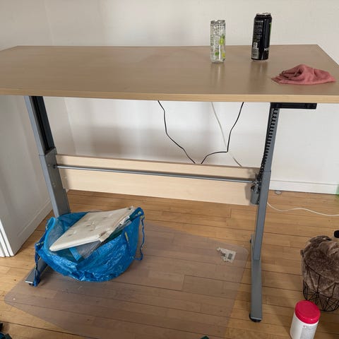 Hæve-sænke-bord der måler 80x160. Står som nyt. Skærm og tastatur kan tilkøbes.