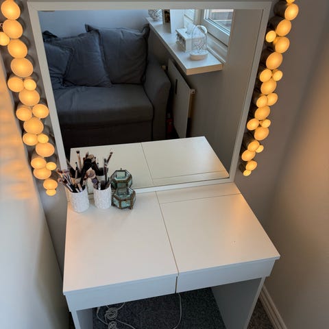 IKEA sminkebord med spejl og opbevaring hvid