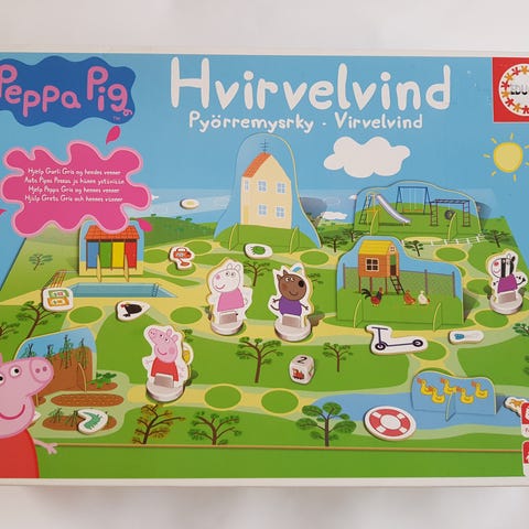 Peppa Pig Vildkatten brætspil med 70 brikker. Spillet går ud på at finde de viste billeder hurtigst muligt på spillepladen. Motiverne er baseret på Peppa Pig-universet med kendte figurer og genstande fra serien. Velegnet som familiespil og til børn, der kan lide billed- og observationsspil.