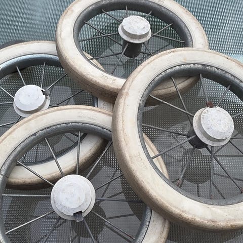 Sælger 4 originale luftfyldte barnevognshjul fra Odder.