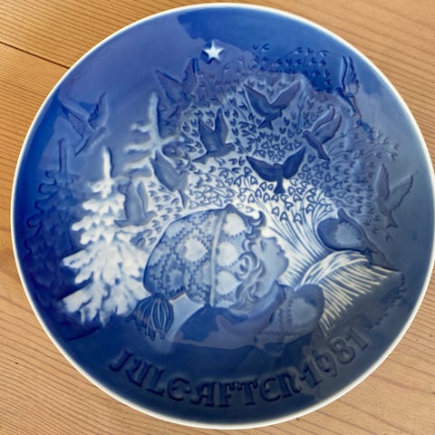 Platten med titlen “JJul i skoven” er designet af Henry Thelander. Den måler 18cm i diameter, er i god stand og uden skår.