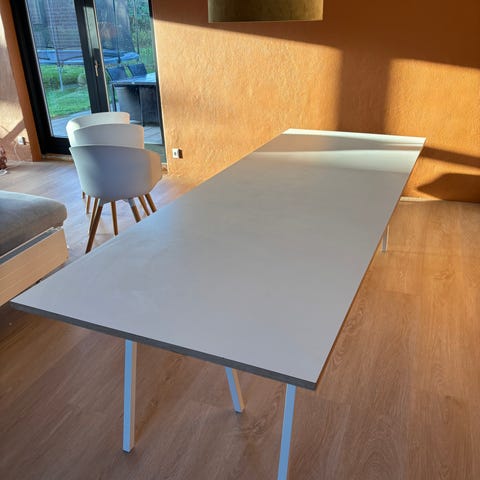 HAY Loop Stand Table 250x92,5 cm - White/White Laminate samt HAY Loop Stand Support for ekstra støtte under bordet.