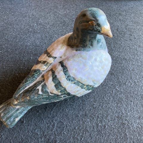 Figur på ca. 20 cm. Lavet af Keramiker Helle Duus Weiss fra Roskilde. Unik men laver i hendes serie “Hjerteløberne".