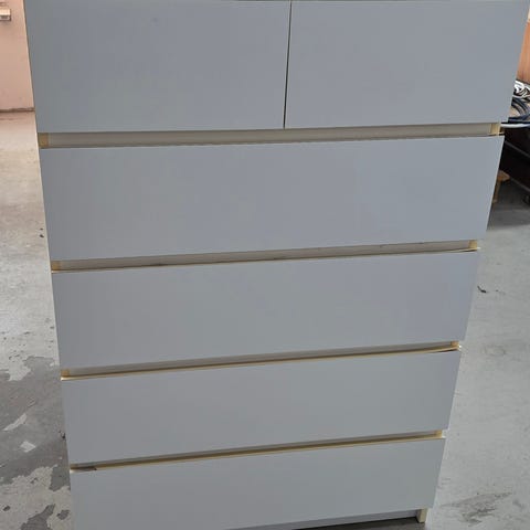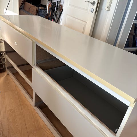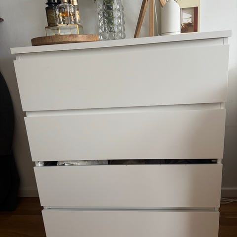 Malm chest of drawers with 4 drawers is being given away for free. The frame is missing a piece between the top and second top drawer (see pictures) but the chest and drawers are fully functional. It must be brought down from the 5th floor in Indre Nørrebro. Fast pickup is prioritized. From a home without animals and smoking.