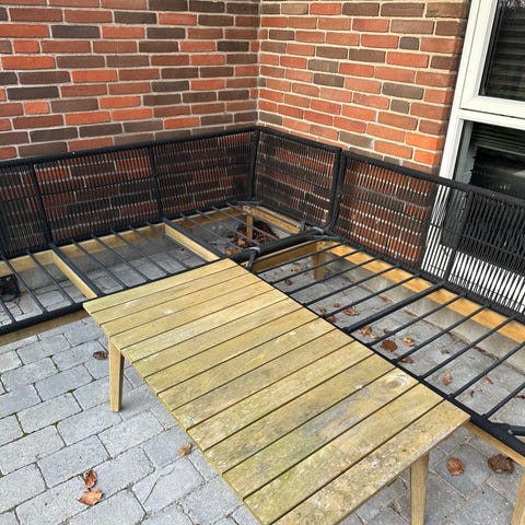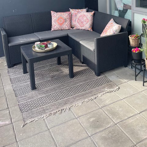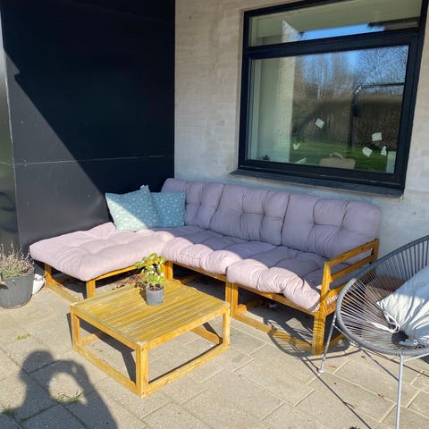 Hjørnesofa til udendørs brug med grå hynder
