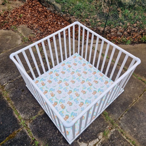 Kravlegård. Den står på hjul.