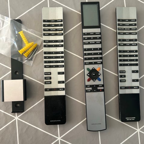 Bang & Olufsen fjernbetjening til styring af B&O-lyd- og eventuelt tv-udstyr. Fjernbetjeningen har numeriske taster, funktionsknapper til lyd og kanaler samt navigationsknapper. Egnet som erstatning eller ekstra fjernbetjening til kompatible Bang & Olufsen-enheder.