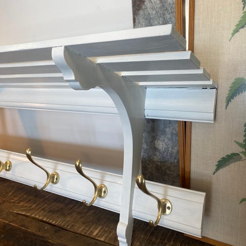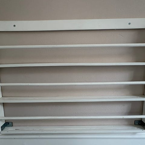 Tallerkenrække i massivt fyrretræ med flot patina.