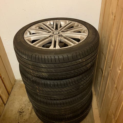Super velholdt, klar til at blive sat på bilen. To fælge har mindre skade, se billederne.
