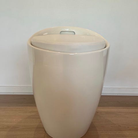 SmartStore Collect, Slim. Hvid, smal "spand", med to spande som indsatser. Låget i træ. Låget har lid mærker, kan nemt males. Mål: l: 72 cm, b: 21 cm, h: 43 cm
