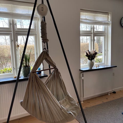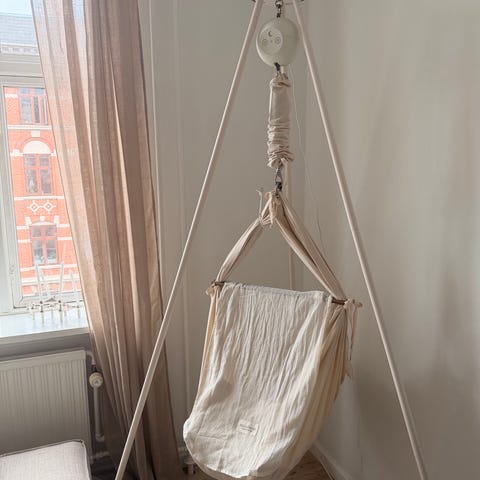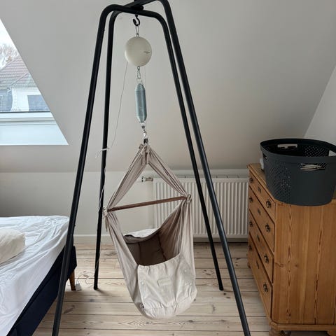 Slyngevugge, vuggemotor og stativ. (3900 dkk)