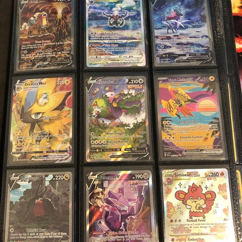 Der er kort i mapper som er begyndte masterset, der er gradede kort og sleeved kort. Jeg har registreret 762 kort via PriceCharting app. Den er alle de kort som IKKE ligger i poserne + phantasmal flame som.