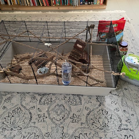 Vi har kun én zebramus tilbage og derfor skal hun videre til en ny flok da mus ikke trives alene. Hun er ca 2 år og zebramus bliver 3-4 år gamle.