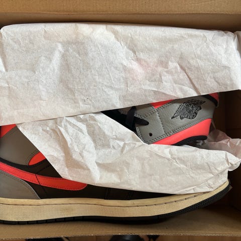 Air Jordan sneakers i størrelse 44. Modellen er i sort med rød inderside og rødt Jumpman-logo. Overdelen fremstår som en klassisk basketball-inspireret sneaker med snørelukning og mellemhøj skaft. Skoene egner sig til hverdagsbrug og fritid. Farvekombinationen sort/rød gør dem lette at kombinere med forskelligt tøj.