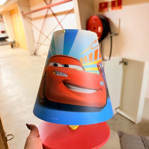 Natlampe til børn. Tre selvlysende, lette plasticbolde bliver lyst op af LED-lys i skiftende farve. Boldene ligger løst og kan tages ned i sengen til et barn der måske er utrygt ved mørket.