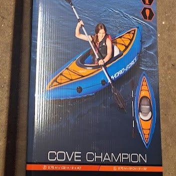 HF Lite-Rapid X2 oppustelig kajak til 2 personer i orange farve. Kajakken er designet til to voksne med en samlet maksimal belastning på 160 kg. Leveres med årer og pumpe ifølge emballagens illustrationer. Velegnet til brug på søer og roligt vand. Materialet er robust PVC/plast ifølge produkttypen for denne model.