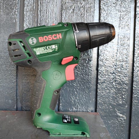 Bosch PSB 400 RE boremaskine i grøn farve. Ledningsført model med pistolgreb og standard borepatron til almindelige bor. Velegnet til boring i materialer som træ, metal og murværk afhængigt af valg af bor. Maskinen har afbryderknap ved håndtaget og strømtilslutning via kabel.