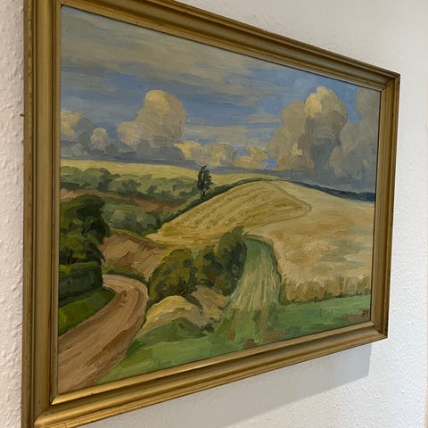 Landskabsmaleri udført af K.E. Lundgren. Mindre ridse i himlen. Se foto.