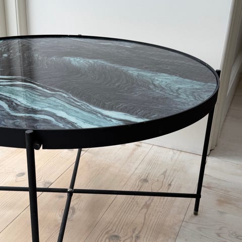Skønt rundt sofabord. Super flot. Lidt ridser i yderkanten, se billed.