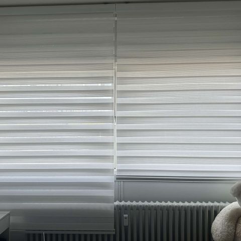 Helt ubrugte hvide mørklægnings rullegardiner.