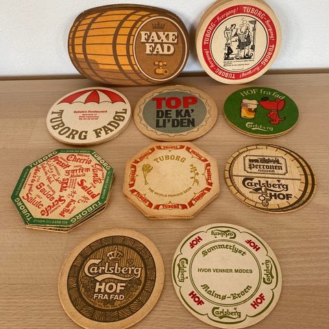 Diverse mærker ølbrikker samling papir rund og firkantet