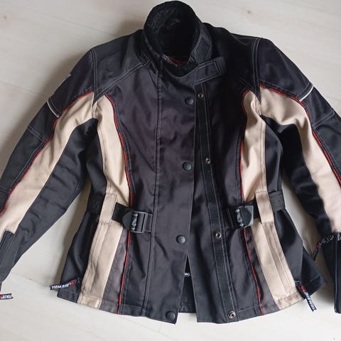 Motorcykeljakke med skjold i albue, skulder og ryg