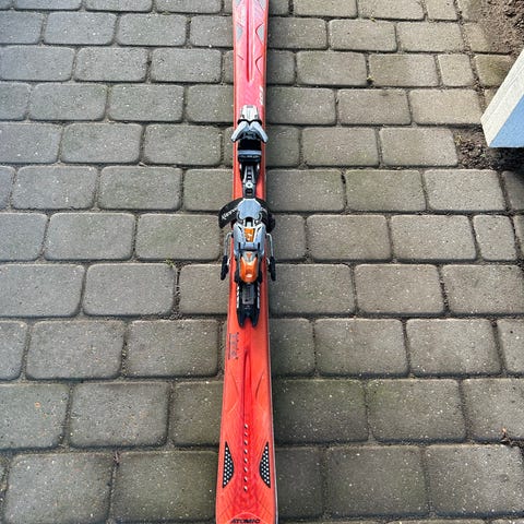 Alpinski, Atomic, str. 172, Samlet pakke med ski, hjelm, støvler og poser til opbevaring og transport.