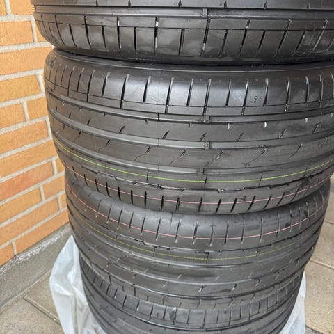 255 45 19 Tesla Y Ny Sommerdæk Continental Sport 7 100% monster DOT25 Normal pris 8500 kr Afhentning skal koordineres, da de står opbevaret hos min dæk mand