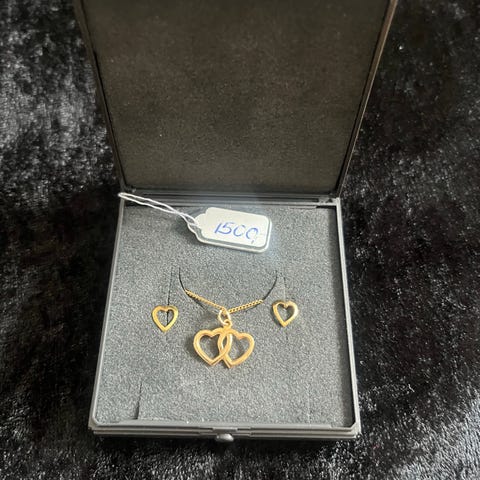hjerte vedhæng med halskæde og ørestikkere, Sølv JAa 925