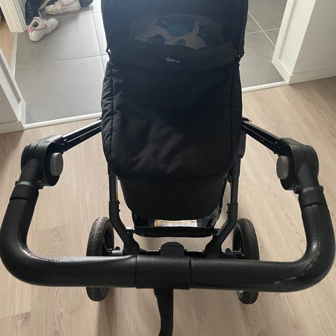 Fungerer fint, men hjulet foran er låst til kun at kunne dreje. Hjulet kan ikke låses til kun at kører ligeud.
