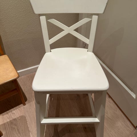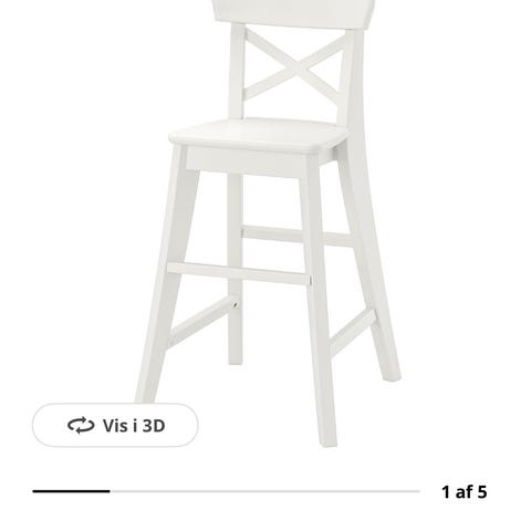 Juniorstol hvidlakeret. Ikea, Model Ingolf. Totalhøjde 77 cm. Sædehøjde 52cm. Bredde