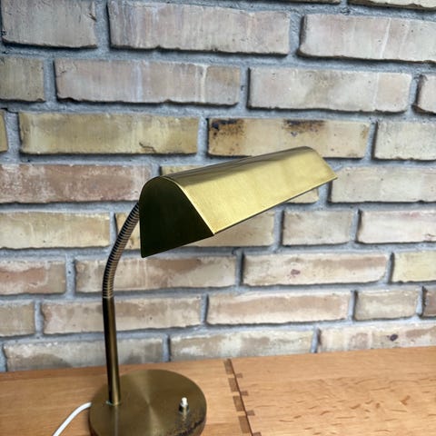 Fed bordlampe i Messing med trædetaljer