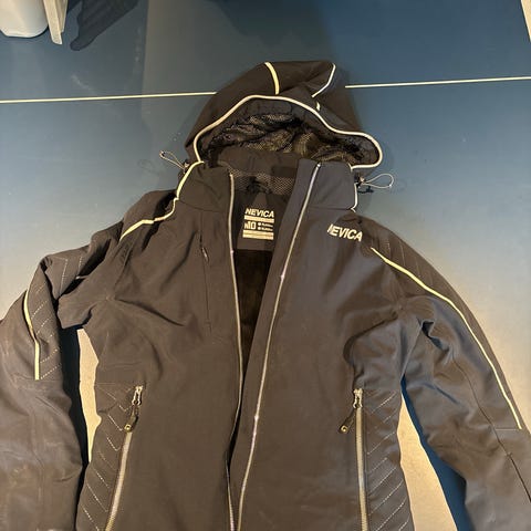 H&M Sport jakke i grå farve med hætte. Jakken har gennemgående lynlås foran og flere lynlåslommer, blandt andet på brystet og ærmet. Indvendigt er der glat for og netlommer. Ærmerne har indvendige ribmanchetter for bedre pasform og vindbeskyttelse. Ydermaterialet fremstår som vævet tekstil med diskret melering, og lynlåse samt detaljer er i kontrastfarver. En fin skijakke til Alperne - men går ikke ned til -30 grader i Norge😊