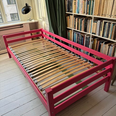 Sælger denne fine lyserøde juniorseng fra Hoppekids. Sælges med en Luxury madras. Det er en super fin og god seng, den sælges kun fordi vores børn har fået en køjeseng.