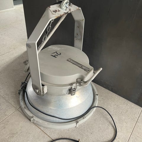 Indbygget driver til 12 V og nu monteret med halogenlamper men kan med fordel monteres med AR111 LED spots. Vi har 2 komplette hvor den ene skal ha ny pærer. Pris for den med pærer 2200kr og 2000 kr for den uden eller 4000 kr for begge (nypris over 6000 kr/stk)