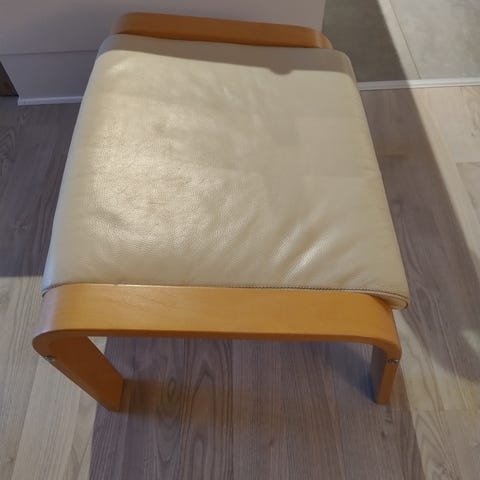 Skamler, 2 stk. fodskamler/siddepladser i råhvid læder og stel i børstet stål