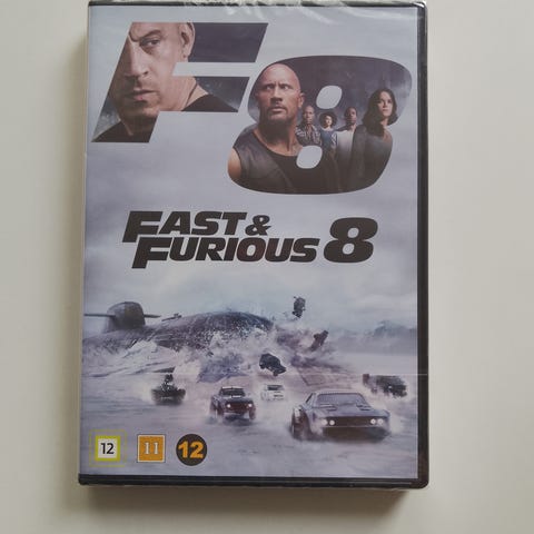 Fast & Furious 8 Blu-ray film. Udgivelse i Fast & Furious-serien på Blu-ray-disk. Forsiden viser aldersmærkning 12 år. Bagsiden angiver bonusmateriale som blandt andet slettede scener og feature-kommentarspor. Egnet til afspilning på Blu-ray-afspillere, der understøtter regionen angivet på omslaget.