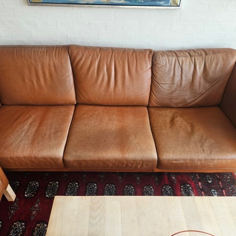 Sofaerne fremstår i god og solid stand. Der er naturlige brugsspor i læderet, som giver en flot patina og understreger kvaliteten – ingen skader eller fejl.