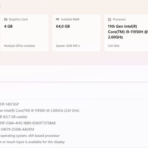 Grafikkort: NVIDIA RTX A1000 Laptop GPU + Intel Iris Xe